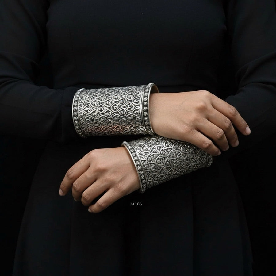 Authentic Sutlada kada or Shinde Shahi toda in 925 silver. Product will be given an oxidized black finish unless mentioned in order note. Price mentioned is for a single kada. If you need pair, add 2 quantity. Delivery: Some sizes are...