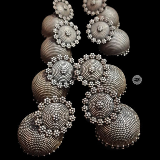 925 silver jhumka Material: 925 Silver Size: 2.5 inch long, 18 mm jhumki Weight: 20 gms Fastening: Stud