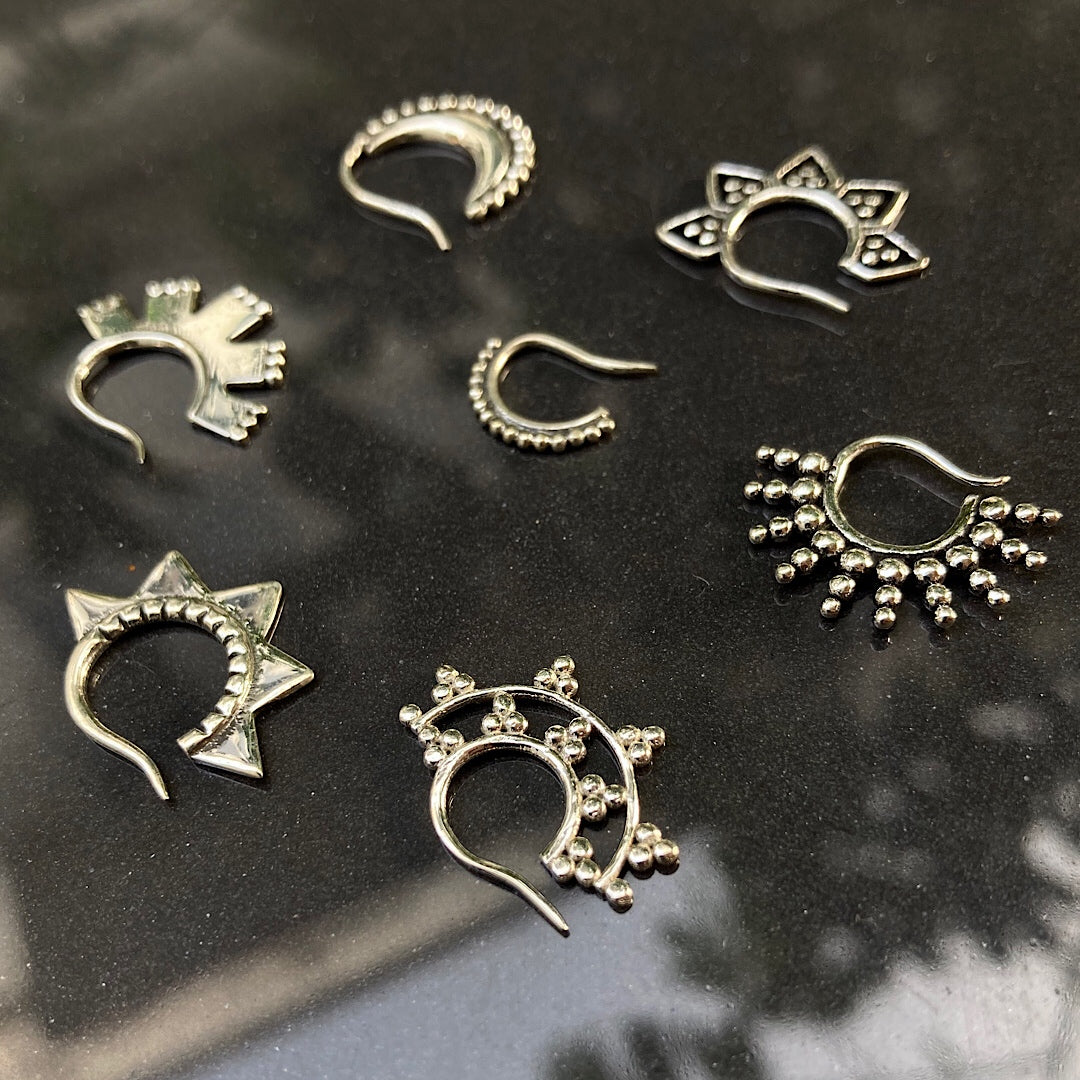 Shop from a wide range of handcrafted nose nath, silver nose ring, nasal septum, nose septum, fake nose ring, nose stud, septum rings, nose ring hoop, maharashtrian nath, nath nose ring and more.